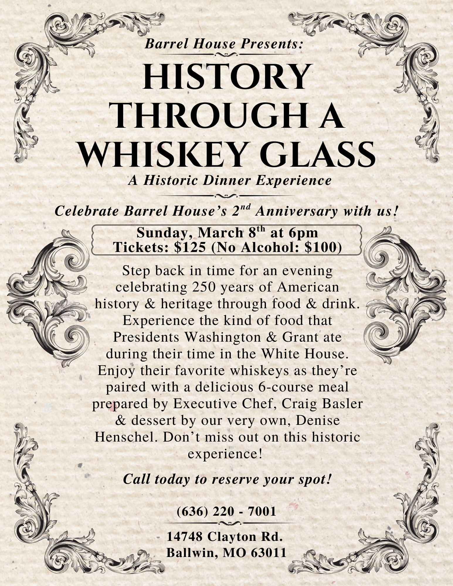 03/08 History Through A Whiskey Glass Dinner & Second Anniversary View Flyer